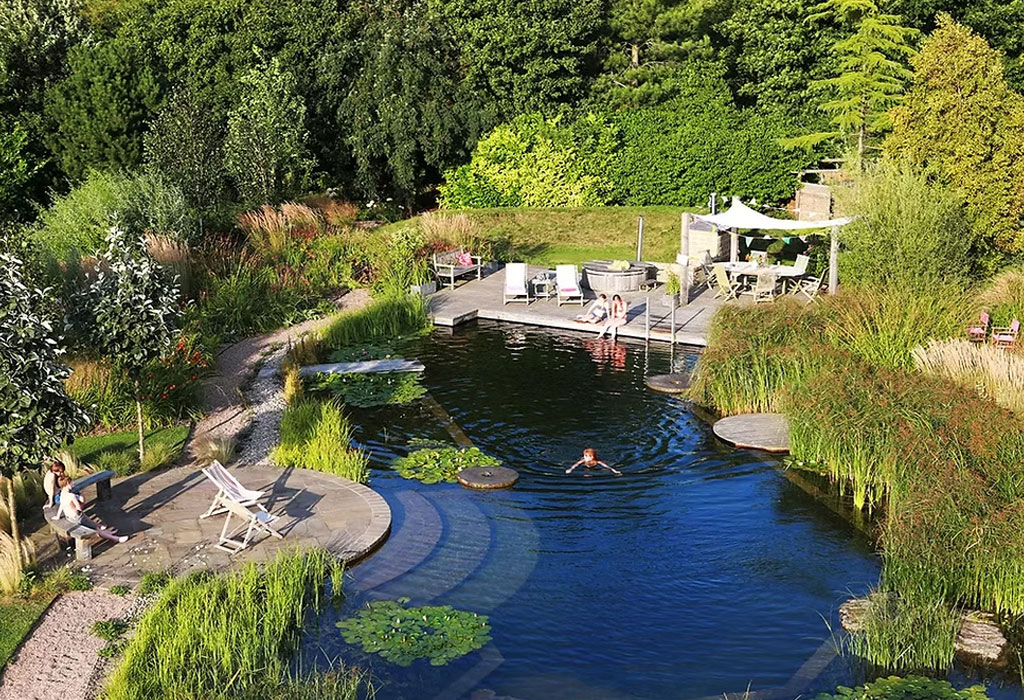 Our swim ponds are designed as natural, chemical-free swimming environments using biological filtration.