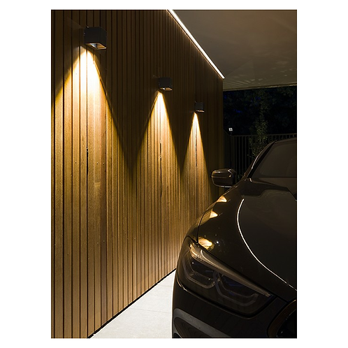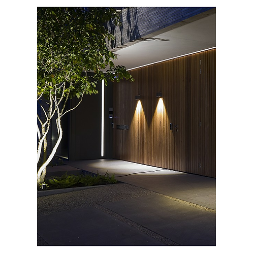 Wall luminaire ACE DOWN 100-230V provides a directional light beam and is suitable for mounting on a wall or fence.
