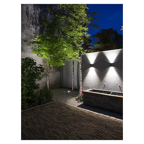 Wall luminaire ACE UP-DOWN provides a directional beam of light upwards and downwards and is suitable for mounting on a wall or fence.