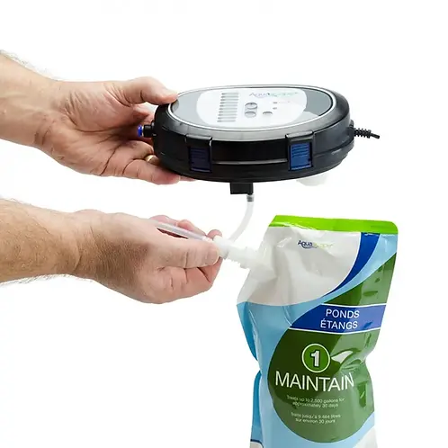 Maintaining optimum water quality has never been easier. The Aquascape Automatic Dosing System for ponds and fountains automatically adds a choice of specially formulated Aquascape water treatments to ponds, decorative fountains, and Pondless® Waterfalls, eliminating the guesswork and routine of manually adding water treatments. The Automatic Dosing System is dependable, extremely quiet, and provides treatment options for a wide variety of issues in water features. In order to maintain optimum water quality, water treatments should be added consistently on a regular basis.