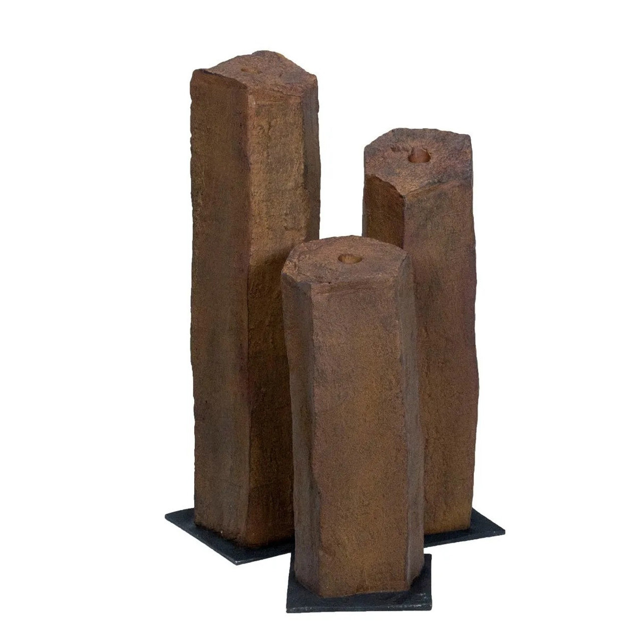 Each column is molded from genuine Mongolian basalt stones, handmade and painted in the USA using fiberglass and resin for a realistic and durable fountain. Unlike real basalt, which is extremely heavy and difficult to move and install, the faux basalt columns are lightweight and easy to transport and install. Each column also includes a convenient base to help secure it in place, which can be filled with decorative stones and gravel.