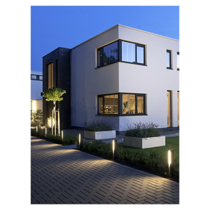 The free-standing outdoor lamp EVO is a style object for your garden that provides an architecturally sleek light image on one side. EVO looks its best when placed in, for example, a border with higher planting or along a path.