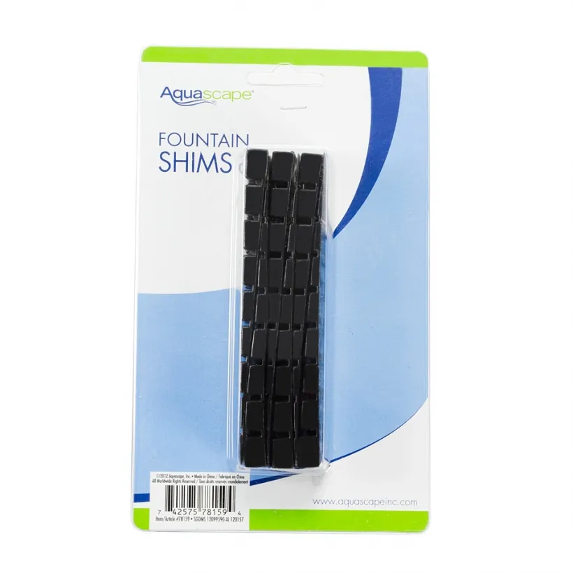 For optimal performance, every decorative fountain must be properly leveled. Aquascape Fountain Shims are perfect for leveling a variety of water features, including those made of resin, concrete, and GFRC. Made from durable plastic, these shims are resistant to water damage and can be stacked as needed. Each shim measures 4.5″ by ¾″, and the pack includes six easy-to-use shims.