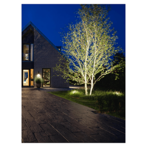 The focused light from the SCOPE LED outdoor spotlight highlights special places in the yard such as trees, shrubs, statues and facades up to 8 meters away.