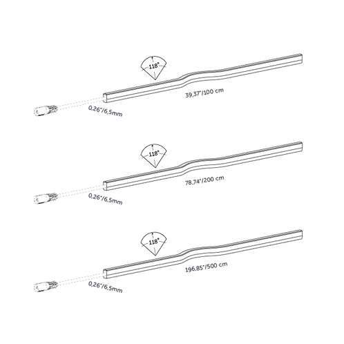 Can be placed straight and curved; bending radius of only 3 cm.