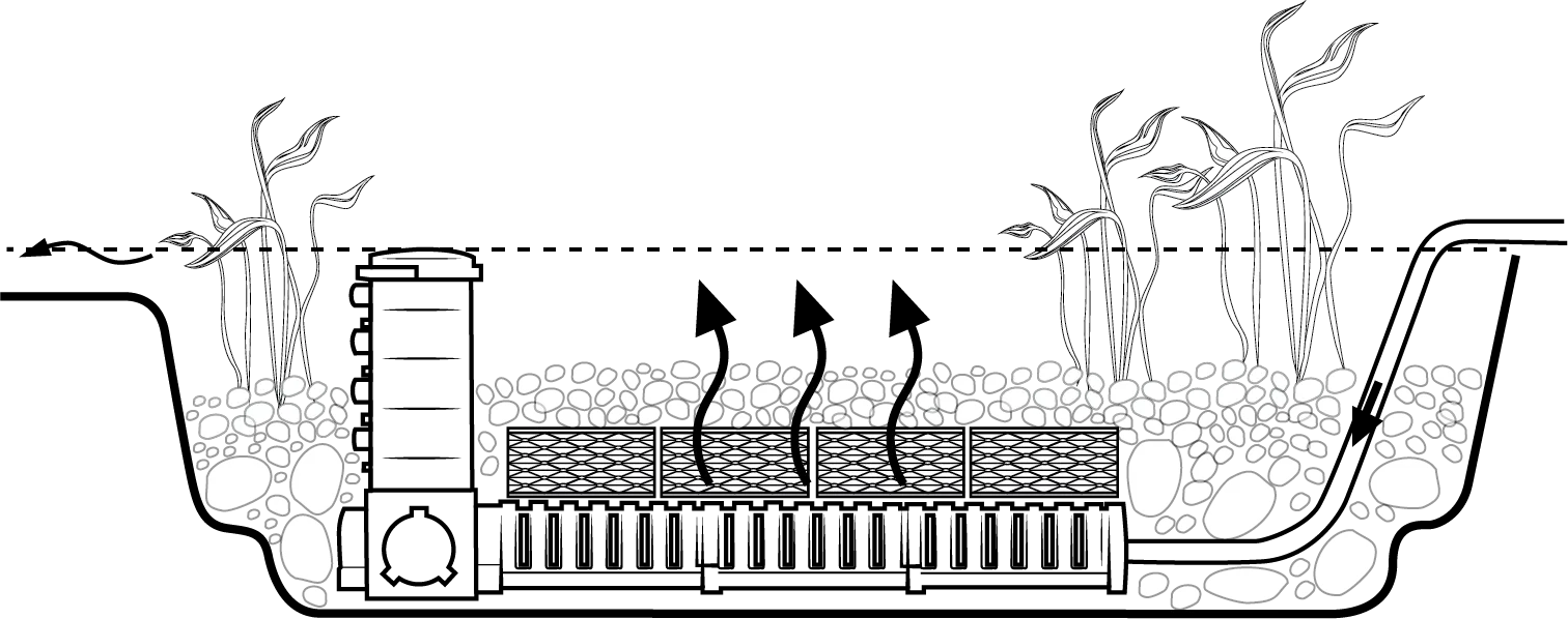 At 1m deep the approximate filtering capacity: 185,000 litres (This will be affected by stocking, planting, and environmental factors)